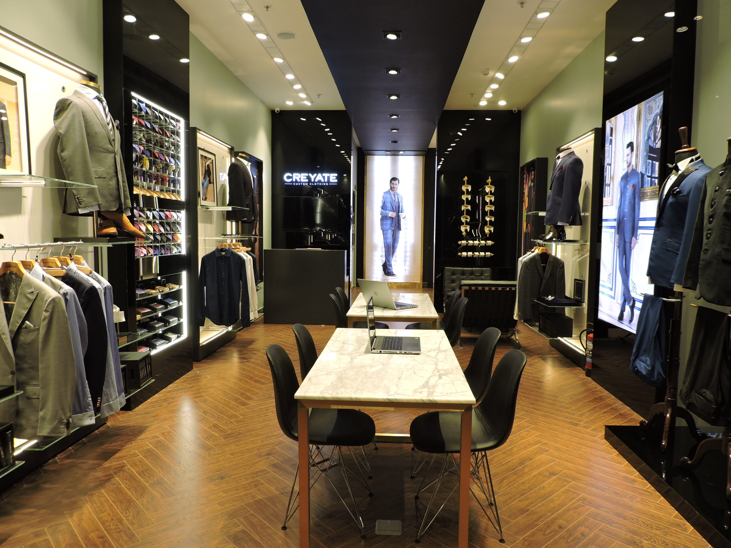 Welcome to our CREYATE store at Palladium Mall, Mumbai, where we blend the timeless elegance of colonial style with the modern sophistication of today’s technology. Crafted under the discerning guidance of Arvind Brands, CREYATE stands as a beacon of bespoke fashion, offering made-to-measure attire tailored specifically for the discerning gentleman. Our store is not just a destination; it’s an experience designed to elevate every aspect of your shopping journey. As you enter, the ambiance exudes an air of refinement and exclusivity. The fusion of old-world charm and contemporary flair is